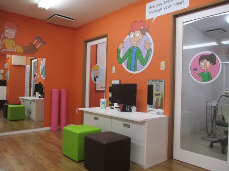 小児矯正専用のトレーニングルームで女性スタッフが丁寧に指導します。